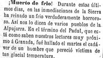 31 de marzo de 1883. Un hombre muere de frío en el Padul