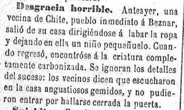 31 de marzo de 1883. Muere un nińo de Chite carbonizado