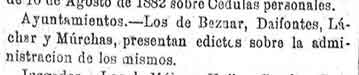 4 de marzo de 1883. Administración de Béznar y Murchas