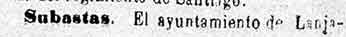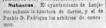 12 de agosto de 1884. Subasta de apertura de darros en