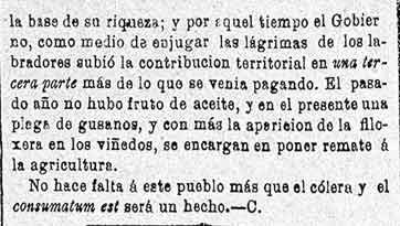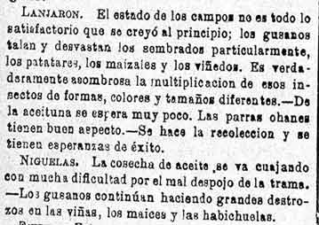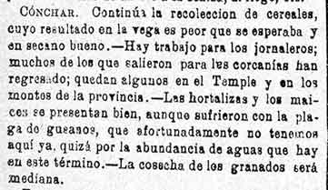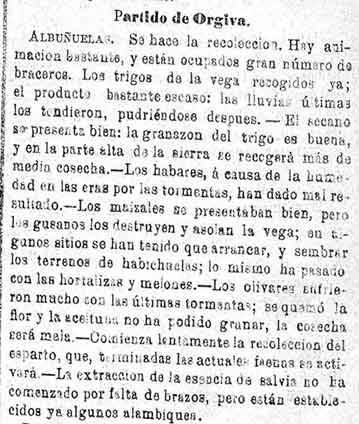 15 de agosto de 1884. Agricultura de Albuñuelas, Cónchar,