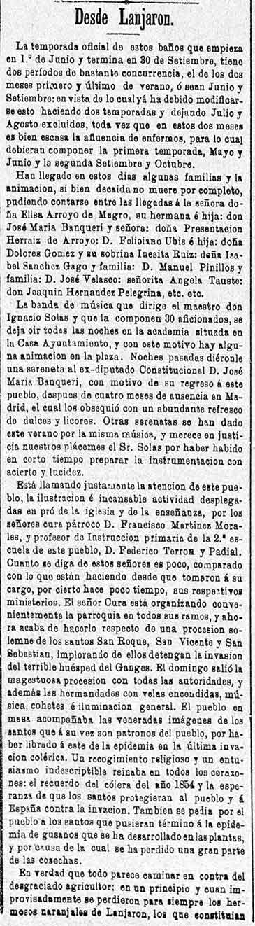 9 de agosto de 1884. Visitante de Lanjarón