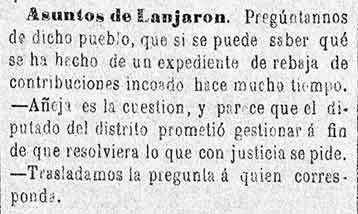 6 de agosto de 1884. Preguntan desde Lanjarón que se ha hecho