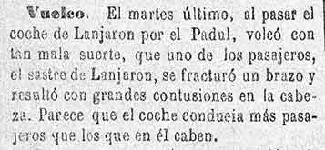 13 de enero de 1884. El conche de Lanjarón tiene un accidente