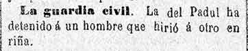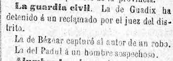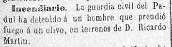 9 de enero de 1884. Detención en Padul por incendiar un olivo