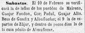 29 de enero de 1884. Leñas de Padul y Albuñuelas