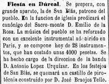 31 de enero de 1884. Fiestas de San Blas de Dúrcal