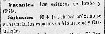 6 de enero de 1884. Estanco de Chite. Espartos de Albuñuelas