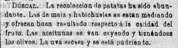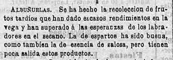 14 de octubre de 1884. Agricultura de Albuñuelas, Cónchar,