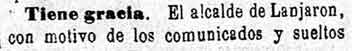 2 de octubre de 1884. Comunicado del alcalde de Lanjarón
