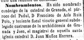 4 de octubre de 1884. Nombrado canónigo de la catedral el