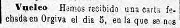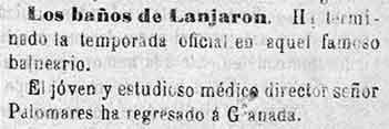 11 de octubre de 1884. Corresponsal de Lanjarón