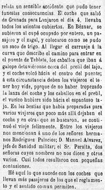 7 de octubre de 1884. La diligencia de Granada a Lanjarón