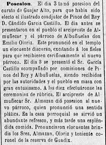 8 de octubre de 1884. El coadjutor de pinos del Rey nombrado