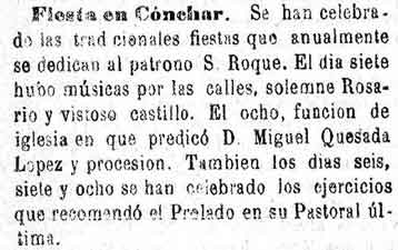 13 de septiembre de 1884. Fiestas de San Roque en Cónchar