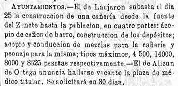 13 de septiembre de 1884. Subasta de cañería en Lanjarón