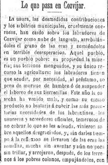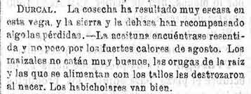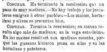 19 de septiembre de 1884. Agricultura en Cónchar, Cozvíjar y