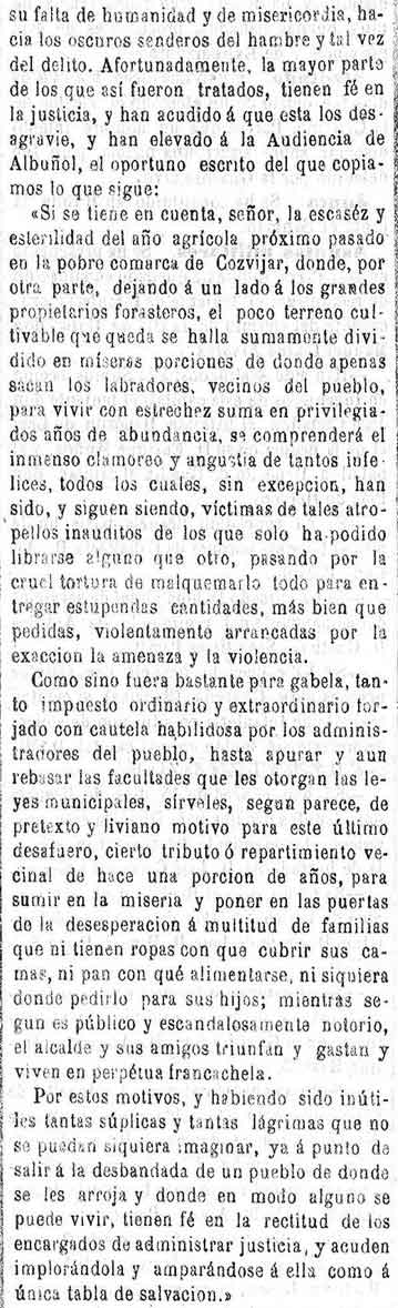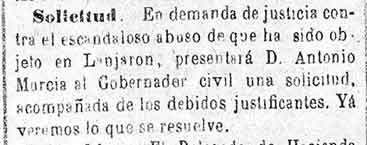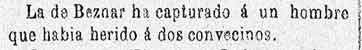 4 de septiembre de 1884. Detención en Béznar por herir a dos
