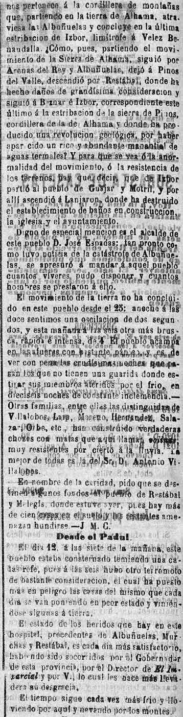 En Pinos del Valle se han cuarteado edificios y se ha desnivelado el ayuntamiento y otras casas. Se ha prestado ayuda a Albuńuelas