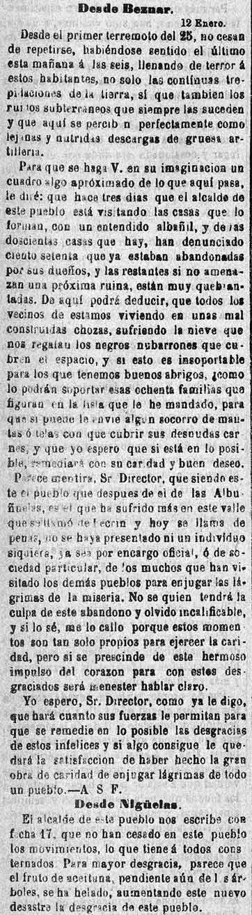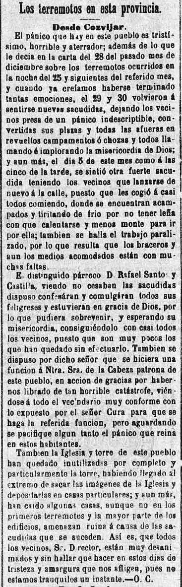 En Cozvíjar la gente duerme en Campamentos y chozas. El párroco hizo comulgar a todos por si acaso. La iglesia está en mal estado sobre todo la torre. Se han sacado imágenes de la iglesia y se han llevado a casas particulares por si acaso
