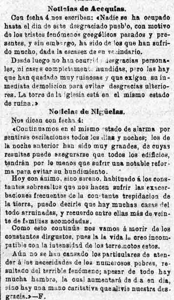En Acequias hay casas ruinosas y la torre de la iglesia está en ruina. No hay desgracias personales