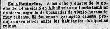 18 de febrero de 1885: Siguen los temblores en Albuńuelas