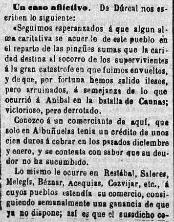 21 de febrero de 1885. Piden ayuda desde Dúrcal, para el