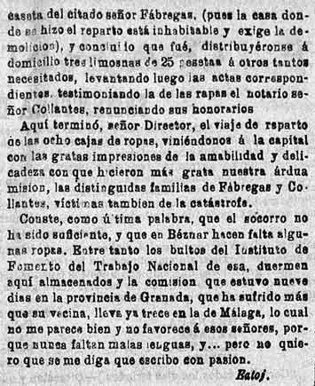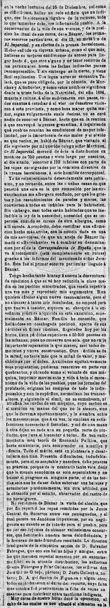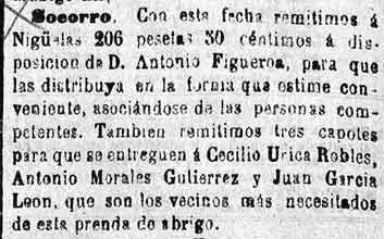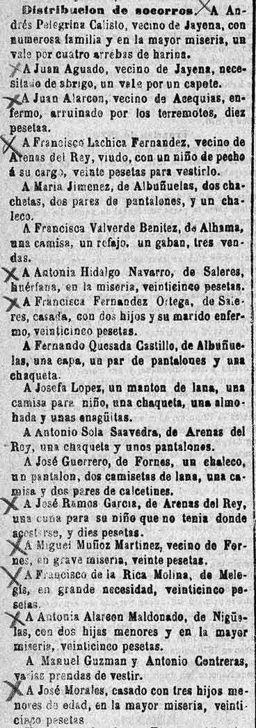 28 de febrero de 1885. Distribución de socorros