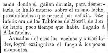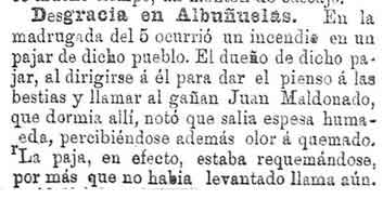 10 de diciembre de 1886. Incendio de un pajar en Albuñuelas