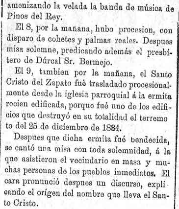 su ermita recientemente edificada y bendecida ya que se destruyó tras el