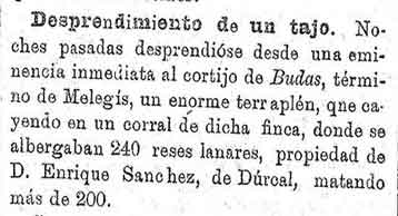 1 de diciembre de 1886. Un tajo se desprende sobre el cortijo