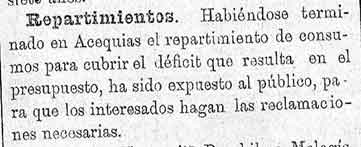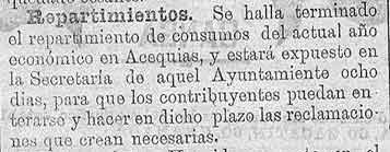 15 de febrero de 1886. Repartimientos de Acequias
