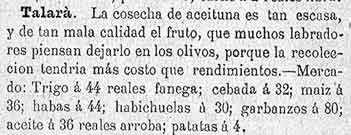 16 de febrero de 1886. Agricultura de Dúrcal y Talará