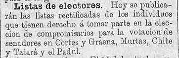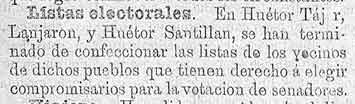 27 de febrero de 1886. Listas electorales de Lanjarón