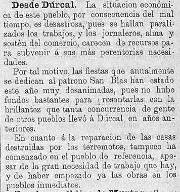 18 de febrero de 1886. Pobreza en Dúrcal, Las fiestas de San