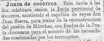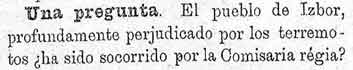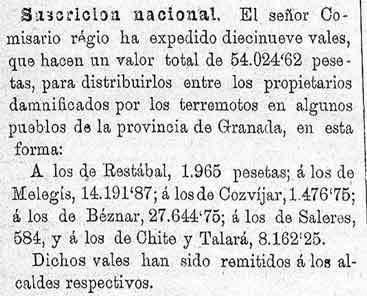 20 de febrero de 1886. Ayudas de dinero por los terremotos a
