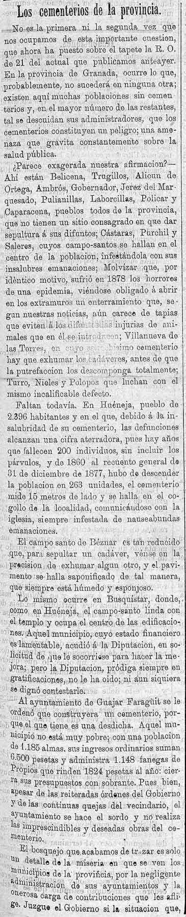 26 de febrero de 1886. Los cementerios de la provincia en muy