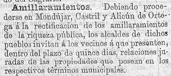 26 de febrero de 1886. Amillaramientos de Mondújar