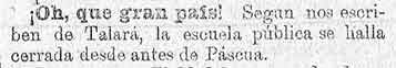 6 de febrero de 1886. La escuela de Talará esta cerrada desde