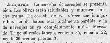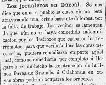 22 de junio de 1886. En Dúrcal los jornaleros en mala