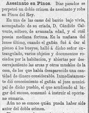 27 de junio de 1886. Doble asesinato en Pinos del Rey
