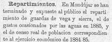 30 de marzo de 1886. Repartimientos de Mondújar