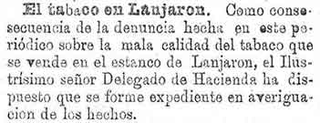 13 de noviembre de 1886. La falta e tabaco de Lanjarón