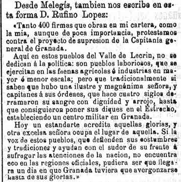 27 de noviembre de 1886. Desde Melegís se apoya la