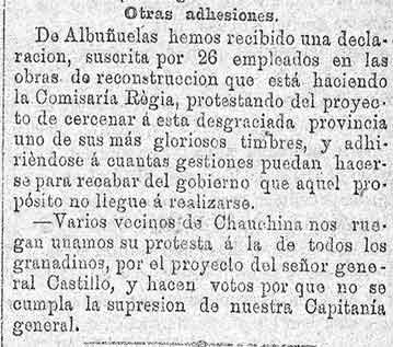 28 de noviembre de 1886. Desde Albuñuelas se apoya la