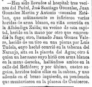3 de noviembre de 1886. Tres vecinos de Padul heridos en riña