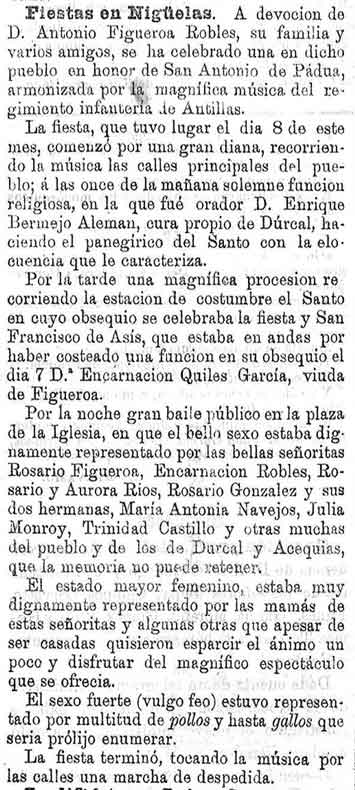 13 de octubre de 1886. Fiestas de san Antonio de Padua en