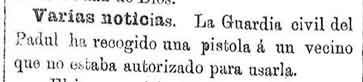 16 de octubre de 1886. Se recoge una pistola en el Padul