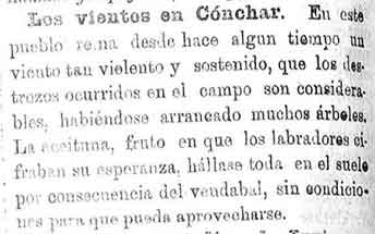 19 de octubre de 1886. Los vientos causan importantes