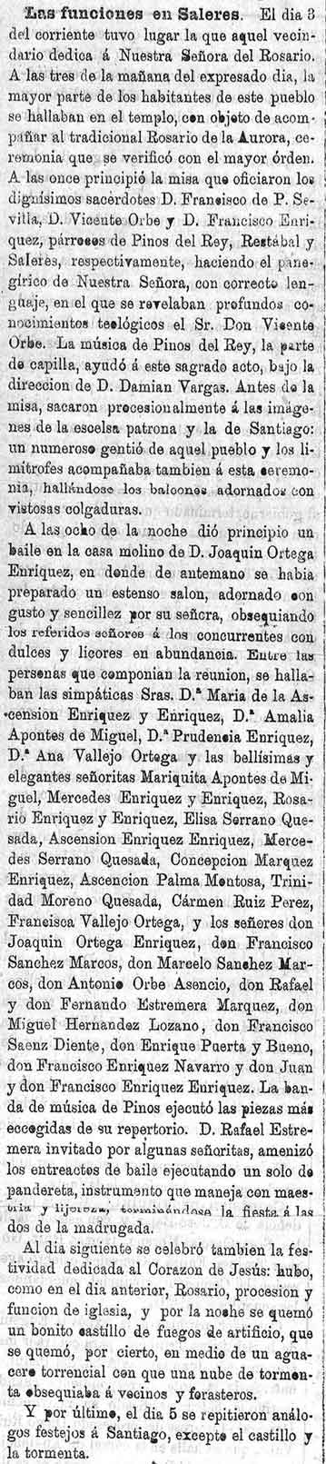 15 de octubre de 1886. Funciones religiosas de Saleres